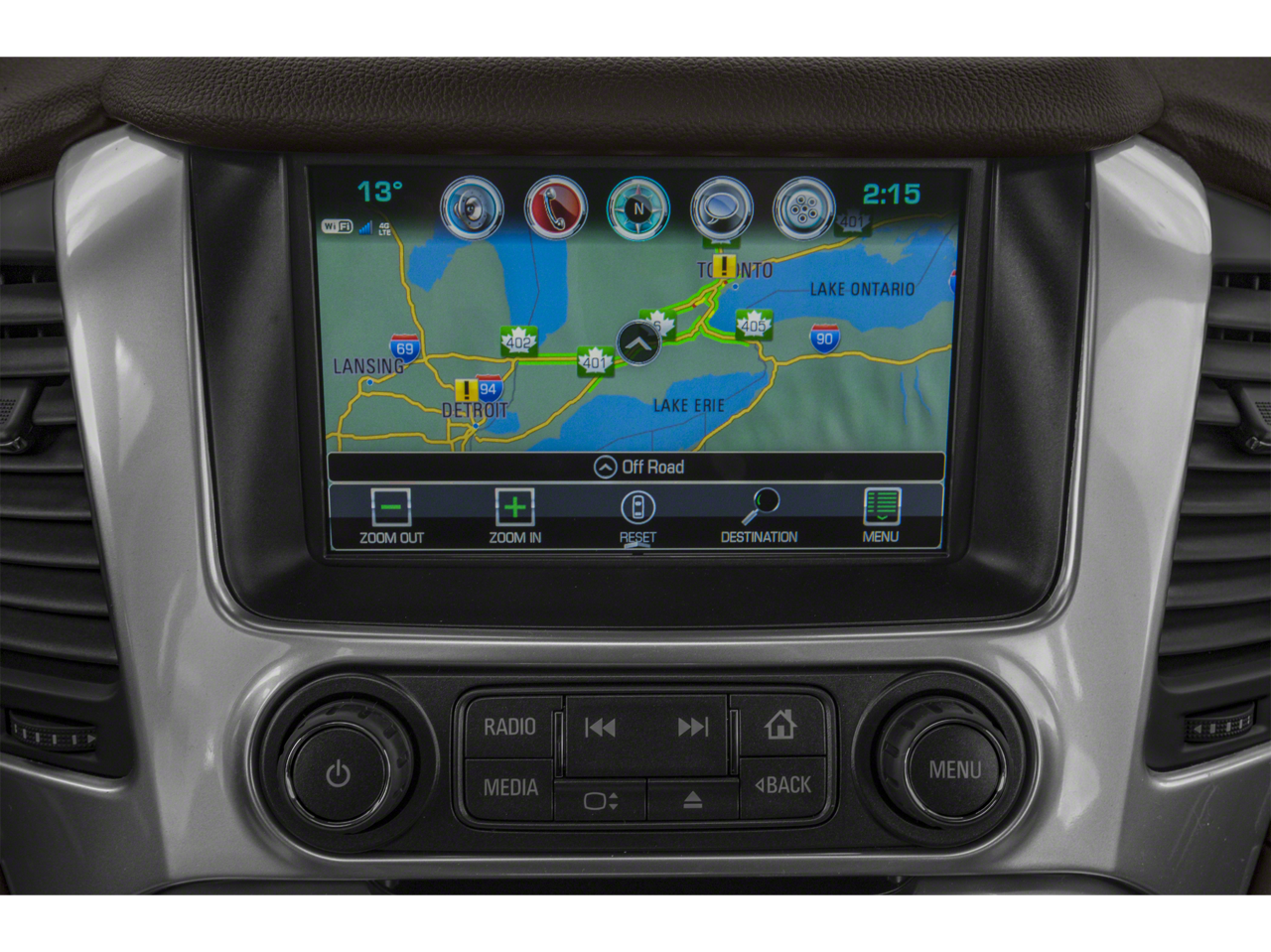 - When in Reverse at low speeds, provides you a view of the scene directly behind the vehicle on the Infotainment screen to help you park and avoid nearby objects1